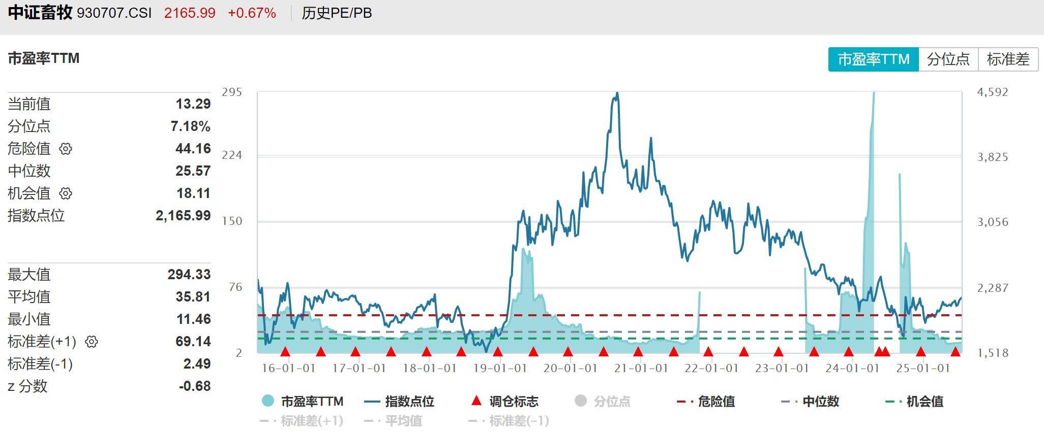 像这种成本控制好的龙头,在行业未来稳态下盈利能力也就更可持续,修复起来有支撑。目前中证畜牧的最新市盈率才13%,比过去10年93%的时间都便宜,板块下一阶段的上升空间还是很大的。